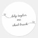 Estos sellos para sobres bodas de corazones de amor son perfectos para un boda rústico. El romántico diseño minimalista presenta un tipo de letra de caligrafía cardíaca dulce y simple. Personalice la etiqueta con los nombres de la novia y del novio.