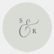 Estos elegantes sellos para sobres de boda en monograma de menta de sabio son perfectos para un simple boda. El minimalista diseño verde claro y gris presenta una elegante tipografía romántica con un estilo moderno de cristal. Personalizable de cualquier color. Mantenga el diseño minimalista y elegante, como está, o lo personalice añadiendo sus propios gráficos y obras de arte. Personalice la etiqueta con los nombres de la novia y del novio.