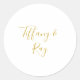 Estos elegantes sellos para sobres bodas dorados son perfectos para su moderno boda minimalista blanco y dorado. El diseño presenta un tipo de letra oro contemporáneo mínimo acompañado de caligrafía formal. ¡Manténgalo como está, o elige personalizarlo con tu propia obra de arte o fotos!