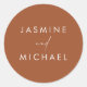 ¡Selle los sobres de su boda con estos sellos para sobres sencillos y elegantes! El diseño presenta sus nombres con letras blancas modernas, complementadas con un guión manuscrito con fondo de terracota. Estos elegantes stickers de bodas de terracota son perfectos para sellar sobres, añadir favores de boda, y más!