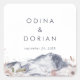 Estos sencillos sellos para sobres de boda floral son perfectos para un boda al aire libre. El moderno diseño minimalista cuenta con una montaña acuática azul marino con flores silvestres de otoño rosadas. Personalice la etiqueta con los nombres de la novia y del novio.
