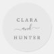 Estos sellos para sobres de boda gris claro y carbón vegetal son perfectos para un boda de diciembre. Personalice la etiqueta con los nombres de la novia y del novio. Estos sellos para sobres se coordinan con la colección de vegetación de Navidades de Fresh y Yummy Paperie.