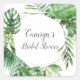 Estos sellos para sobres tropicales salvajes de palmeras con ducha de novia son perfectos para una ducha de bodas con temática playera. El diseño presenta una exótica variedad de hojas de plátano de palmera de color agua verde, helechos, follaje, plantas botánicas y vegetación para un ambiente tropical de verano. Personalice la etiqueta con los nombres de la futura novia.