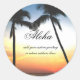 Pegatinas personalizados de la palmera de Hawaii con la opinión de la puesta del sol. Personalizar con su propio saludo o uso como sellos de la aleta de sobre del remite.