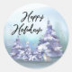 El diseño de los sellos para sobres "Happy Holidays" de las fiestas temáticas incluye una escena de bonito en los bosques de invierno con un conejo de nieve acuarela. El diseño se acentúa con un rociado de estrellas doradas, y "Happy Holidays" es una tipografía moderna con letras a mano. navidades feriados. Invierno