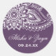 Estos sellos para sobres de boda paisley-ciruela son perfectos para un boda moderno. El diseño del mehndi incluye una hermosa henna mandala floral y motivos paisley sobre un fondo de ciruela morada. Personalice la etiqueta con los nombres de la novia y el novio y la fecha del boda. Coincide este diseño con las piezas coordinadas en morado, turquesa, rosa y naranja en la Colección Boda Paisley Indio Colorida: https://www.zazzle.com/collections/119662428781277925.