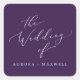 Estos delicados sellos para sobres de boda morado son perfectos para un boda de primavera o verano. El romántico diseño minimalista presenta una bonita y elegante tipografía blanca sobre un fondo morado de ciruela oscuro con un aspecto limpio y sencillo. Personalice la etiqueta con los nombres de la novia y del novio.