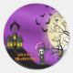 Los Sellos para sobres Happy Haunting Reaper presentan una escena nocturna de Halloween embrujada con un cielo morado degradado, luna amarilla brillante detrás de una espeluznante silueta de árbol y murciélagos volando por ahí. El resto de la escena muestra un pañuelo lúgubre con una hoz sangrienta y un gato negro con un gorra de brujas junto a una tumba. Colorful Stylized es Happy Haunting. Coincide con nuestras invitaciones, tarjetas de felicitación, postales y postales. Perfecto para los envíos de Halloween. Este diseño se creó utilizando artwork©delightful-doodles.com original (http://delightful-doodles.com/)
