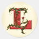 Decoren sus Navidades Tarjetas y sobres de temporada navideña con esta hermosa pegatina de Navidad / sello para sobres que tiene una letra roja monogramada L adornada con ungüento contra un fondo tan anticuado. La imagen de fondo del personalizable se puede eliminar si prefiere un fondo blanco, o puede cambiarla al color que elija con el botón personalizar. ¡Este pegatina también es ideal para hacer tus propias tartas para tu fiesta de vacaciones!