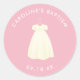 Estos sellos para sobres sencillos y dulces presentan el ilustracion de un bautismo arrojado sobre una percha junto con el espacio para el nombre de tu pequeño y la fecha de su bautismo. Son perfectas para invitaciones o para usar favores en fiestas.