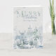 Navidades acuáticos personalizados con una selva de invierno nevada y un escenario en tonos suaves de azul y verde. La redacción dice "deseándote una feliz Navidad y un feliz año nuevo" y puedes personalizar el texto restante. Diseño sutil y elegante de acuarela con tipografía decorativa.