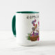 Semana Santa dos tonificantes de taza combinada con conejito, canasta y huevos de color.
