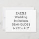 Invitaciones para casamiento personalizado SEMI-GLOSS - 6,25" x 4,5". Un papel brillante delgado y liso diseñado para la impresión fotográfica con el mejor color de vibración, ideal para la impresión a todo color. 40% de contenido post-consumidor (reciclado). Tarjeta de 110 lb, 12,5 puntos de grosor. FABRICADA EN EE. UU. El gran volumen compra ahorros de descuento de varias compras en tarjetas de invitación, hasta un 50% de descuento en sus compras por múltiples pedidos de artículos. Invitaciones a la boda de Zazzle - Cree, haga, diseñe sus propias invitaciones de boda personalizadas a partir de esta plantilla de diseño de tarjeta de invitación Zazzle totalmente personalizable y personalizada en blanco. Impresión de gran calidad, a todo color y a todo color en ambos lados con opciones de impresión Standard o de alta definición. Opciones de tamaño: 5" x 7", 4,25" x 5,5", 3,5" x 5", 4" x 9,25", 5,25" x 5,25", 4,5" x 6,25", 5,5" x 7,5", 6,5" x 8,75". Opciones de orientación: vertical (retrato) u horizontal (paisaje). Opciones de acabado: Semi-gloss, Matte, Ultra-grueso, Laid, Linen, Columned, Felt White, Felt Ecru, Kraft, Pearl Shimmer, Champagne Shimmer y Metallic Silver. Opciones de forma y estilo de la tarjeta: Esquinas estándar o redondeadas (todos los tamaños); Soporte, Vieira, Billete o Etiqueta (sólo 5" x 7"); Circular (sólo 5,25"). Se incluyen sobres blancos estándar, con opciones de actualización. Perfecto para invitaciones de boda, soltera, ducha de novia, cena de ensayo, guardar la fecha, etc., y para cualquier invitación de fiesta de RSVP, como aniversario, cumpleaños, dulces dieciséis y Quincenera; o para eventos corporativos e invitaciones de exposición - para fotos, imágenes, texto, novia y novio, o tu propia creación de diseño personalizado.
