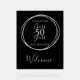 This is a chic and elegant, personalized, 50th birthday party Welcome design. This stylish design is in classic black and silver. It has the message, "Samantha", "Cheers to 50 years", the celebration date and the message Welcome. This modern, typography motif is framed by an elegant silver foil effect circle. This stylish design is perfect for a chic and unforgettable 50th birthday party or celebration. To personalize, simply add your name and date in the personalize this text box. Here you can also change the rest of the text if you want to. To change the color or font, check out the design editing tool. If you need help with personalization, or for a custom design contact me via zazzle chat.