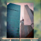 This acrylic sign features a vertical architectural photograph I captured in the heart of the city — a study in symmetry, reflection, and scale. The image draws the eye upward through layers of steel and glass, creating a sense of height and stillness.