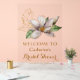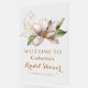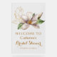 Acuarela Magnolia Morple Floral Bridal Shower Bienvenidos Rótulos de Boda acrílico con elegantes flores de magnolia de acuarela en lavanda suave y morado con hojas verdes sobre un fondo blanco acentuado con oro con su información de señalización de bienvenida de ducha nupcial debajo. Diseñado por Evco Studio www.zazzle.com/store/evcostudio