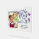 Un bello recuerdo de la mariposa personalizado de señas acrílicas. Este sencillo diseño de citas muestra la cita de la mariposa "Ahora vuela con mariposas". Personaliza con un nombre y una fecha, así como una foto.