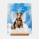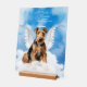 Un magnífico mascota conmemorativo con el nombre y la raza de su perro. Este perro ángel flotando sobre las nubes en el cielo es un Airedale Terrier con alas y un halo.