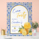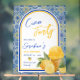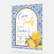 Cartel acrílico fiesta de 40 años con temática italiana con arcos de moda y motivos mediterráneos de azulejos azules, blancos y amarillos con ilustraciones de gelato de limón cítrico, recordándole las vacaciones de verano en el sur de Italia. No dudes en enviarme un mensaje si necesitas ayuda para personalizarlo.