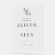 Personalizar este elegante acrílico nupcial usando ampersands e iniciales. Incluya a continuación los detalles de su boda en letras negras refinadas y modernas. Este diseño clásico en blanco y negro es una hermosa opción para bodas formales durante todo el año. Artículos complementarios disponibles.