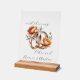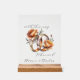 Un conjunto de anillos de boda para la novia y el novio, rodeados por un diseño floral. El texto es el nombre de la novia y del novio, y "con este anillo, yo te casé".