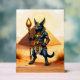 Anubis personalizado - El Dios egipcio de la vida después de la vida en la escena del desierto. Un diseño único con Anubis, el Dios egipcio de la vida después de la muerte, ilustrado con un estilo personalizado audaz. Con su icónica cabeza chacal, piel azul oscura y joyas doradas, Anubis se encuentra confiadamente en el desierto con un brillante personal de piedra de piedra. Perfecto para los fanáticos de la mitología egipcia, el arte de fantasía y los dioses antiguos reimaginados en obras de arte estilizadas modernas.