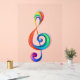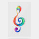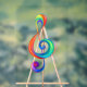 Tecla musical extraída de capas multicolores de colores arcoiris sobre fondo blanco.