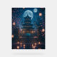 Sumérjase en la serenidad de un templo japonés iluminado por la luna rodeado de flores de cerezo florecientes, farolillos brillantes y reflejos mágicos. Esta encantadora obra de arte captura una noche tranquila bajo la luna llena, mientras una figura solitaria camina por los pasos del templo durante un festival de farolillos. Perfecto para los amantes de la cultura japonesa, escenas tranquilas o arte inspirado en la fantasía.