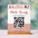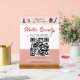 Perfecto para maquilladores, salones de belleza y profesionales de cosmética, este cartel de mesa presenta bonitos diseños cosméticos que muestran elementos de belleza esenciales como lápiz de labios, lustre, sombra ocular y crema facial, todo en un suave esquema de color rosa. El elegante diseño capta la esencia de la belleza y la sofisticación, lo que lo convierte en una elección ideal para los profesionales de la belleza que buscan dejar una impresión duradera. Este signo fácil de personalizar garantizará que sus datos de contacto y el código QR se destacan y son fácilmente legibles para los clientes potenciales en sus eventos de marketing y promoción. Mejore su marca con este atractivo símbolo de la mesa de comercio que encarna el glamour y el profesionalismo.
