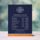 Este elegante cartel acrílico de la Marina Azul muestra las horas de apertura de su negocio en un estilo moderno y minimalista. Perfecto para la marca corporativa, es una forma sencilla de mantener informados a los clientes. Personalizable con su texto, este signo es ideal para pequeñas empresas que buscan realzar su presencia promocional. Aumente la experiencia de su cliente con esta solución elegante y de marca.