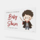 ¡Bienvenido a sus invitados a una celebración mágica con este elegante cartel de ducha de bebé de Harry Potter! Este original cartel muestra un adorable asistente de chibi con una varita, listo para recibir a los huéspedes en el evento de la nueva llegada. Se puede personalizar el cartel con los nombres de los futuros padres, lo que le da un toque perfecto y personalizado a su decoración fiesta.