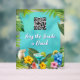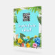 Cartel tropical para una fiesta de soltera. Sube un código QR para que los invitados le regalen el dinero de la novia a sus bebidas. Azul acuático, con borde de hojas grandes, flores de hibisco y diseño de cócteles. El tamaño opaco de acrílico 8x10 también tiene un borde de hojas. Opcional, la madera se puede poner a su disposición. Algunos de los tamaños más grandes también funcionan, pero la ubicación del diseño puede cambiar.