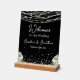 Signo de bienvenida Boda de Black Rustic White Roses Light - Este elegante Rótulo blanco y negro, con hermosas luces de cuerda y rosas blancas con brillo de diamante, puede ser personalizado con los detalles de su Boda.