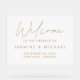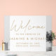 Bienvenido a sus huéspedes bodas con este sencillo y elegante cartel de acrílico de bienvenida a la boda. El signo de bienvenida horizontal boda presenta un guión dorado manuscrito con un fondo acrílico blanco. Personalice el cartel de bienvenida de boda dorado con sus nombres, fecha de boda y ciudad/estado. El cartel de bienvenida acrílico boda es ideal para su boda moderno.