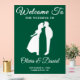 Este letrero de bienvenida boda navidad presenta una tipografía manuscrita verde y un diseño minimalista moderno. Este signo de bienvenida es perfecto para navidades con un boda temático mínimo o se puede usar para cualquier otro evento boda.