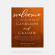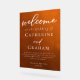 Siga la tendencia otoñal de tonos tierra con nuestro naranja quemado al gradiente marrón caída boda bienvenida símbolo acrílico. Tipografía blanca simple sobre un fondo rústico para un aspecto minimalista. Los tonos bohemios que recuerdan a la arcilla de terracota resaltan su elegante caligrafía en esta moderna señalización texturizada de color.