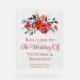 Este magnífico cartel acrílico de bienvenida boda Navidad presenta una hermosa acuarela de flores rojas de poinsettia y hojas de pino para las vacaciones. Un elegante signo de boda de invierno con escritura roja para las vacaciones. La decoración de la recepción es de estilo floral y de bonito.