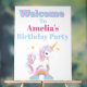 Celebra el día especial de tu hijo con nuestro encantador cartel de bienvenida de cumpleaños de unicornio arco iris personalizado. Interés: Perfecto para una fiesta de cumpleaños de unicornio, este vibrante cartel le añade un toque mágico a sus decoraciones de cumpleaños unicornio. Haga que su celebración sea inolvidable con nuestros exclusivos suministros de cumpleaños unicornio que deleitan a cada huésped. ¡Pida hoy tu cartel de feliz cumpleaños y crea un ambiente maravilloso para una celebración temática de unicornio verdaderamente memorable!