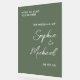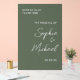 Hermoso cartel acrílico escarpado con letras de guión, nombres y fecha.