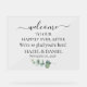 Bienvenido a sus huéspedes con estilo con este elegante signo de boda acrílico de eucalipto verde. Con un elegante guión y fuentes serif, un diseño minimalista y una delicada acuarela de arte eucalipto, este cartel dice "Bienvenidos a nuestro feliz eterno después" e incluye los nombres y la fecha de la pareja. Ideal para bodas rústicos, jardianos o modernos, esta señalización acrílica de moda le da un toque botánico refinado a su ceremonia o entrada a la recepción.