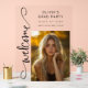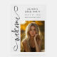 Bienvenido a su fiesta de posgrado con un elegante signo acrílico claro. "Bienvenida" aparece al lado en la caligrafía de escritura moderna. Personalice la plantilla con su foto, título del evento, año de clase y escuela. © Kimbellished, LLC