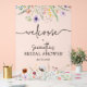 En este cartel de bienvenida de ACRYLIC con ducha de moda aparecen hermosas flores silvestres de acuarela y sus detalles en letras de colores. COINCIDIENDO elementos y más colores en nuestra colección.
