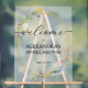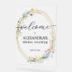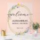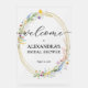 Este cartel de acrílico de bienvenida a la ducha de novia incluye una hermosa corona de flores silvestres acuáticas sobre una falsa corona de purpurina dorada y sus detalles en letras de moda. Los elementos coincidentes están disponibles en nuestra colección.