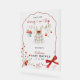 Añada un toque dulce y elegante a la ducha de su bebé con este signo de bienvenida acrílico de la cereza en la parte superior rosada, perfecto para una moderna celebración de la coqueta de la niña. Con cerezas acuáticas, flores suaves, cintas rojas y rosas, y un bonito vestido de bebé de rubla, este elegante cartel reúne el estilo retro vintage con detalles lindos y femeninos. Ideal para un bebé en flor o para un fiesta con temática de bebé, esta tabla de acrílico duradera y a la moda hace que el acento de la entrada o de la mesa sea muy destacado. El acabado brillante y de alta calidad lo convierte en perfecto para duchas de primavera y verano, especialmente para una decoración de cerezo o de temática berry.