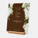 Señal de bienvenida acrílica de la ducha de la novia de color marrón blanco Hydrangea. Tipografía blanca. Diseño moderno y fuente. Elegante.