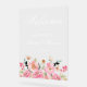 Elegantes flores de jardín en tonos rosados, este diseño floral es perfecto para ducha de novia acrílico Señal de bienvenida con sus detalles en letras blancas de moda. COINCIDIENDO elementos de nuestra colección.