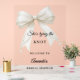 Un fondo claro y transparente, decorado con un lazo de marfil con perlas. Personaliza y añade un nombre.