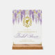 Bienvenidos a sus invitados con la elegancia y el encanto de la era Regencia de nuestro letrero de bienvenida de boda floral vintage de acrílico. Este letrero sofisticado muestra intrincados motivos florales en tonos suaves de lavanda y violeta, hermosamente enmarcados por un borde inspirado en el vintage que refleja la gracia de la era Vintage. Ideal para agregar un toque refinado a la entrada o exhibición de su fiesta de boda, este letrero de acrílico captura la belleza y el romance atemporal de una época pasada, estableciendo el tono perfecto para su celebración.