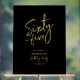 Bienvenido a tu invitado con este moderno cartel de bienvenida de cumpleaños. Este cartel presenta un sencillo guión de "Sesenta y cinco" y "Fiesta de cumpleaños número 65" en el tema del color oro y negro. Puede personalizar el nombre y la fecha. En mi tienda BaraBomDesign hay disponibles invitaciones y suministros para fiestas coincidentes.