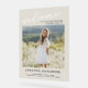 Celebra el gran logro de tu graduación con estilo con este moderno cartel de bienvenida de graduación acrílica que incluye una foto personalizada del graduado. Diseñado para parecerse a una pizarra acrílica clara y elegante, este minimalista cartel de bienvenida le da un toque sofisticado y personal a cualquier fiesta de graduación o casa abierta. Resalte su retrato favorito o foto de graduación junto con texto de personalizable para el nombre del graduado, año de clase y detalles del evento. El diseño limpio y la tipografía elegante crean un estilo pulido que se adapta a las graduaciones de la escuela secundaria, la universidad o la universidad. Perfecto para su exposición en la entrada del evento, en la cabina de fotos o en la mesa de memoria, este cartel marca el tono para una celebración elegante y sentida.